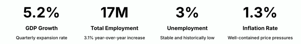 The growth story is underpinned by resilient domestic demand, strong household spending patterns, and notably supportive labor-market conditions. Government cash-transfer programs, including STR and SAR, have provided meaningful support to consumer expenditure, creating a positive feedback loop throughout the economy.