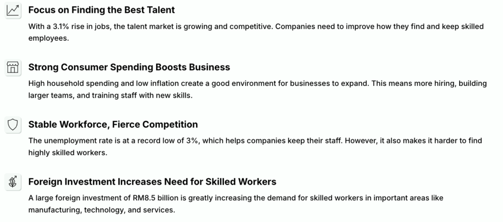 As Malaysia’s economy accelerates, HR leaders face unprecedented opportunities and challenges. Kanry serves as your strategic partner, translating macroeconomic momentum into actionable workforce strategies that position your organization for sustained competitive advantage.