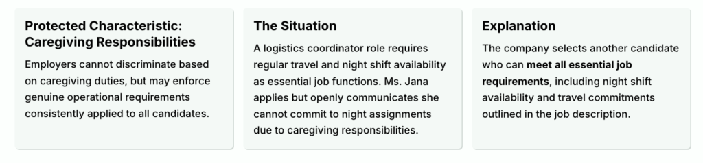 The Workplace Fairness Bill recognizes that employers must sometimes make decisions that involve protected characteristics. However, these decisions remain lawful when based on legitimate, objective business requirements rather than discriminatory intent.