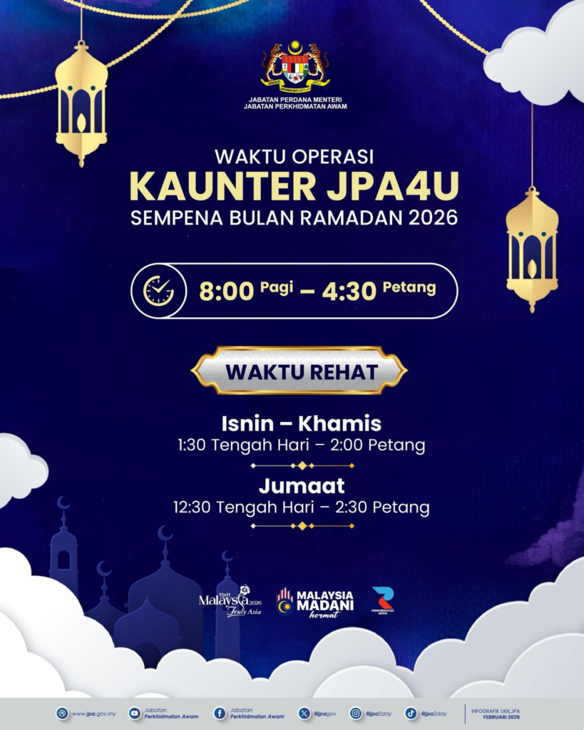 The JPA4U centre, which facilitates human resources and public-sector services, has published special Ramadan hours to reflect local observance practices.